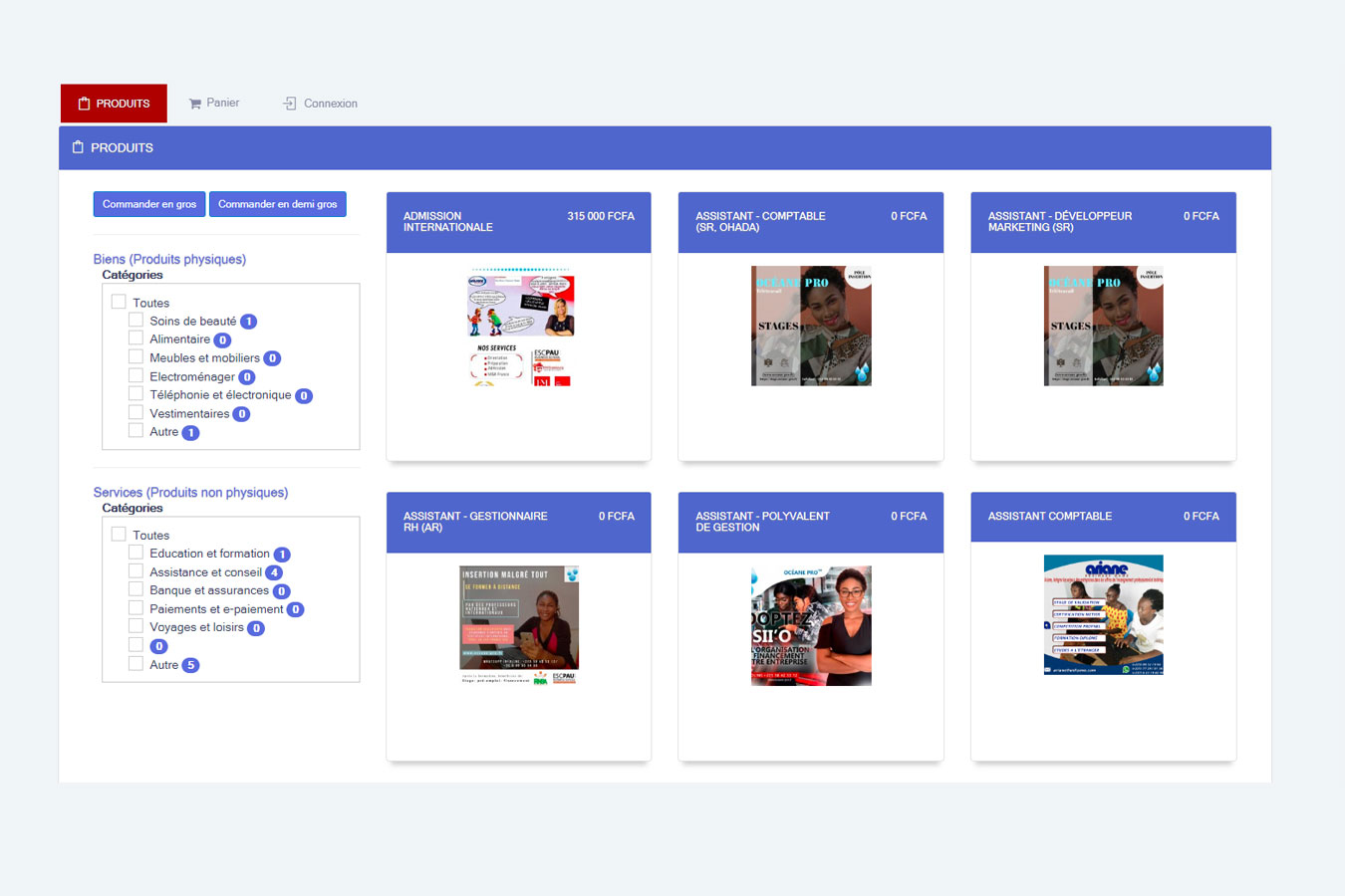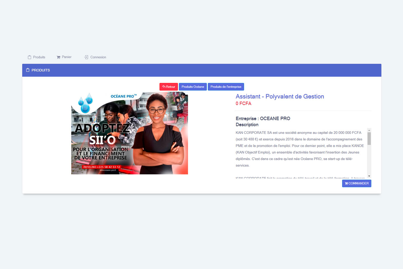 Outil d’affichage et de commande (vente) d’un produit ou service, avec possibilité de le promouvoir publicité dans la basse de données Océane
